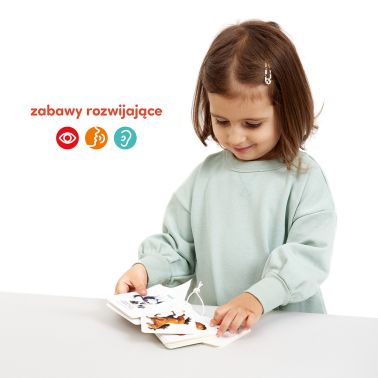 Na edukacyjnych kartach znajdziecie 32 piękne i szczegółowe ilustracje, które przedstawiają zwierzęta mieszkające w Polsce. Książeczka ma poręczny format, a oryginalne łączenie pozwala na korzystanie z niej na mnóstwo kreatywnych sposobów. Bawcie się razem, poznając nowe słowa i rozwijając różne umiejętności.