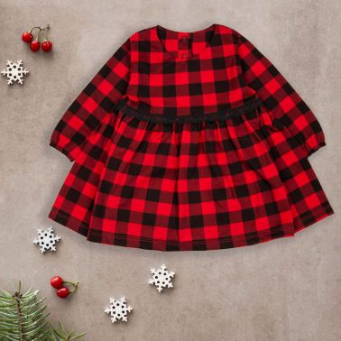 Sukienka w piękną świąteczną kratkę doda elegancji i szyku każdej świątecznej stylizacji. Z tyłu wygodne rozpięcie na 2 bezpieczne bezniklowe napy pozwala swobodnie ubrać sukienkę.