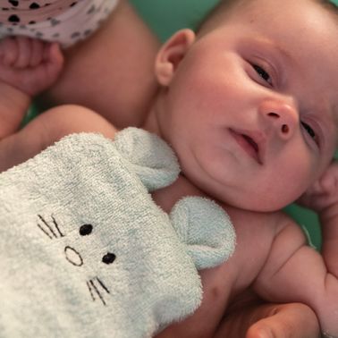 Myjka kąpielowa bambusowa z uszami jest niezastąpiona już od pierwszej kąpieli Twojego maluszka. Wykonana jest z wysokiej jakości delikatnego bambusa z domieszką puszystej bawełny. Wygodna forma rękawicy sprawdzi się podczas kąpieli, a także w codziennej pielęgnacji do przemywania rączek i buzi w trakcie dnia. Jest to dobry wybór dla dzieci z problemami skórnymi ponieważ włóknina bambusowa ma właściwości hypoalergiczne.