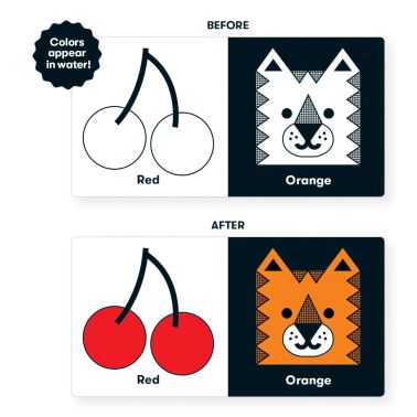 Wyjątkowa książeczka do kąpieli amerykańskiej firmy MUDPUPPY, zrobiona z miękkiego, łatwego do czyszczenia i szybkoschnącego materiału. Na wszystkich 6 stronach znajdziemy czarno-białe morskie stworzenia w różnych pojazdach. Książeczka ma „niezwykłe” właściwości – po zanurzeniu jej w wodzie, na białych obrazkach pojawiają się kolory. Zabawka zachwyca i pobudza wyobraźnię u dzieci. Doskonale nadaje się na prezent.